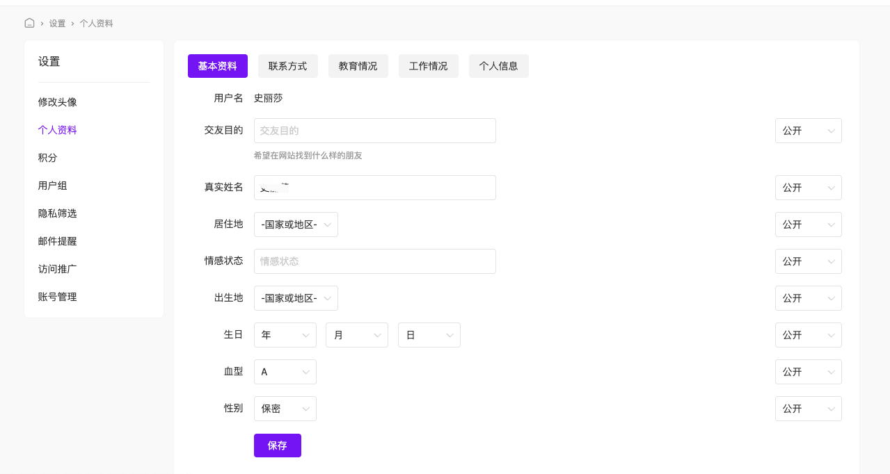 点击头像可修改头像|个人资料|查看积分明细|用户组|账号管理等