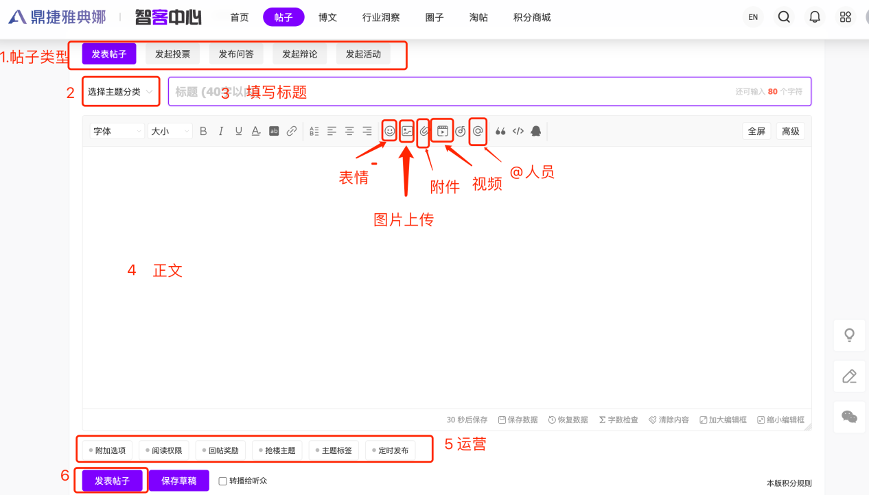 (4) 点击发表帖子|保存草稿