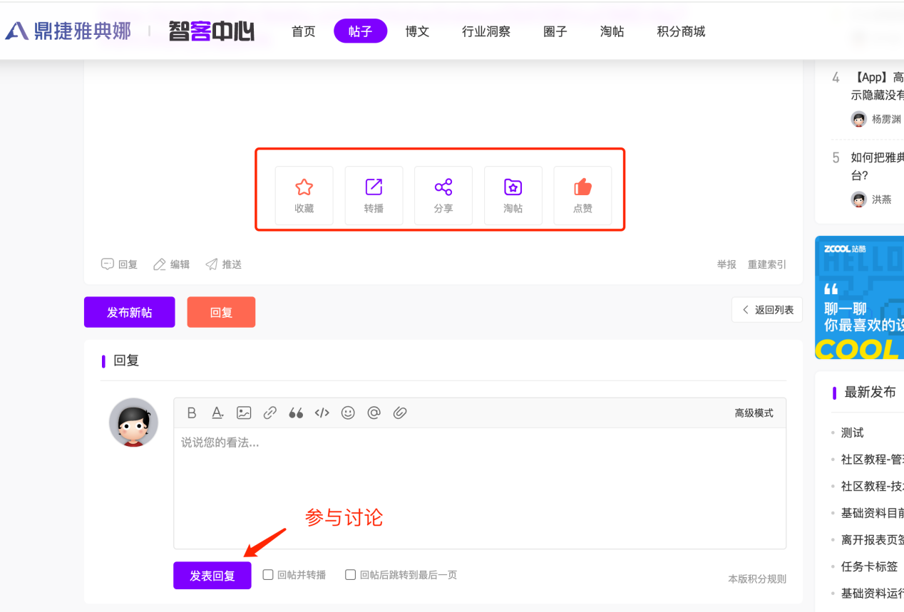 回帖:浏览帖子时,想回复帖子,可以在帖子内容页底部显示的快速回复框回复内容,用户可以在此直接输入回复内容,并进行编辑。轻松参与讨论,促进深入交流。快速回复提供最常用的编辑功能,若用户不能满足,点击高级模式进入高级模式编辑即可