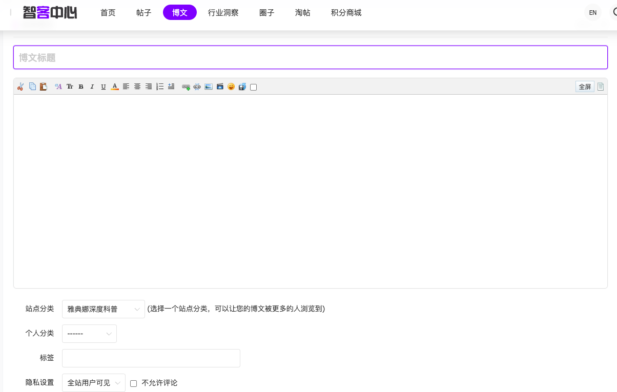 点击博文列表中的【发表新博文】按钮,填写博文标题与博文具体内容。