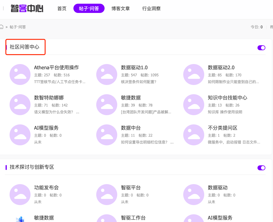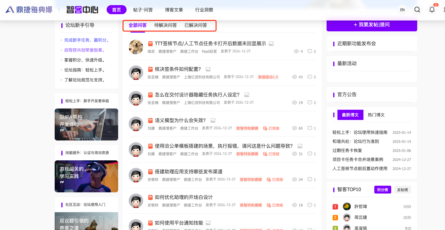 在社区问答中心,可以查看所有分类的问题。