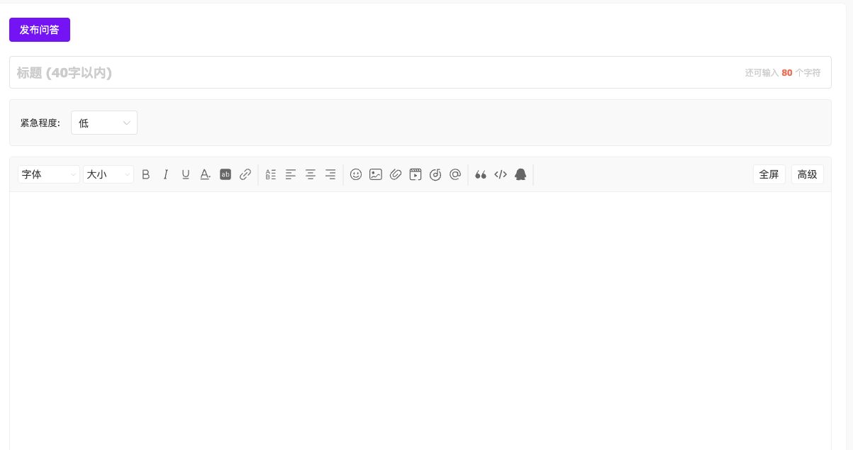(2) 选择【紧急程度】、填写标题(限制40字)其他与帖子雷同,点击发布即可