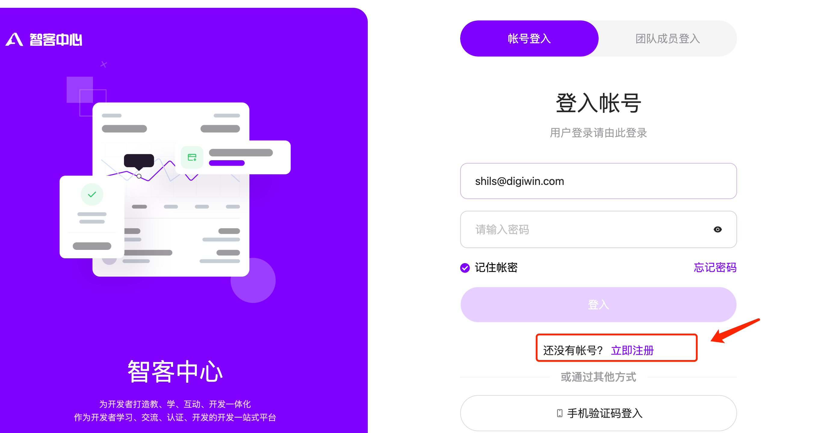 点击立即注册,输入您的手机号并获取验证码