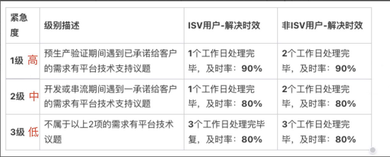 针对紧急度为1的剩余10%如问题较为复杂,一个工作日内也需要有对应进展回复