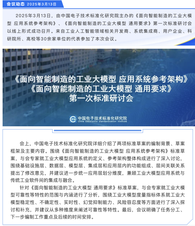 《面向智能制造的工业大模型 应用系统参考架构》等两项标准第一次研讨会成功召开