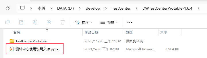 基本操作 : 在为服务平台测试工具中, 参考文件[测试中心使用说明文件.pptx]